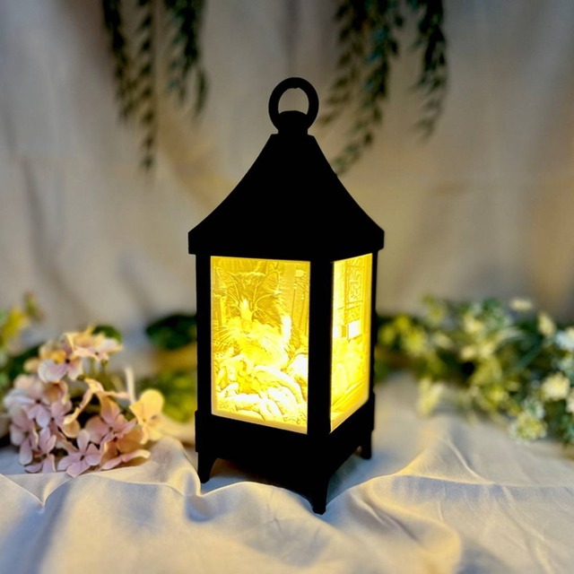 ペットや思い出の写真をランプ照明にしてみませんか? 透かし絵を柄にしたLEDランプを作ってみました。 透かし絵の柄は【完全オーダーメイド製】で、お客様からご希望の写真を4枚いただいてお作りします。 ご自宅リビングやベッドサイドのインテリアに、大事な方へのプレゼントに、いかがでしょうか。 ◆商品のサイズ感目安 本体:W9.5cm × H18cm × D7cm (USBケーブル・スイッチ部除く) ケーブル長:90cm ◆素材 本体:PLA樹脂 / 透かし絵:PLA樹脂 ◆電源タイプ USB給電式(Type-A端子) ※スマホなどのUSB充電器に繋いで給電します/USB充電器は付属しません/充電式ではありません ※ご購入前に「SHOPPING GUIDE」をご一読ください。