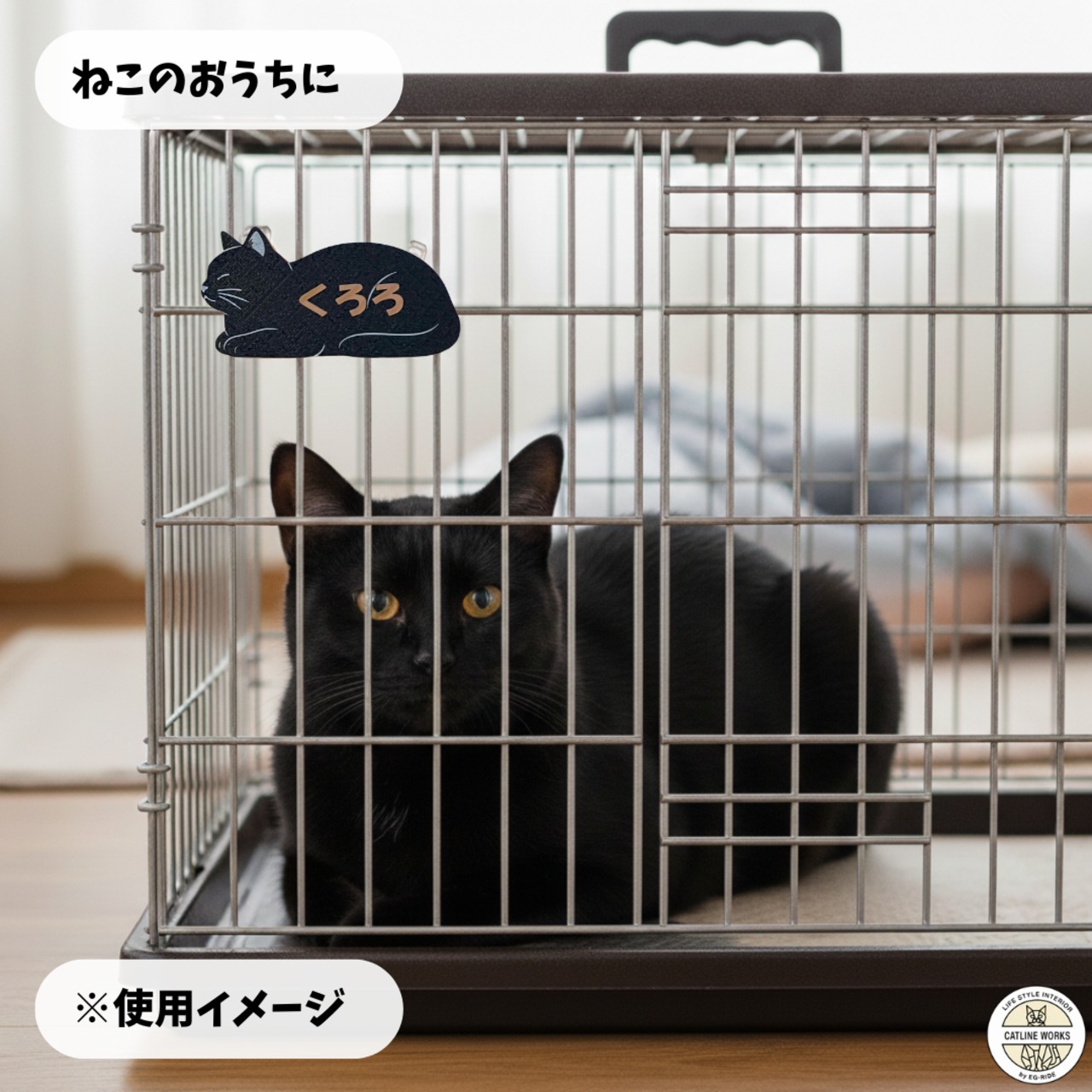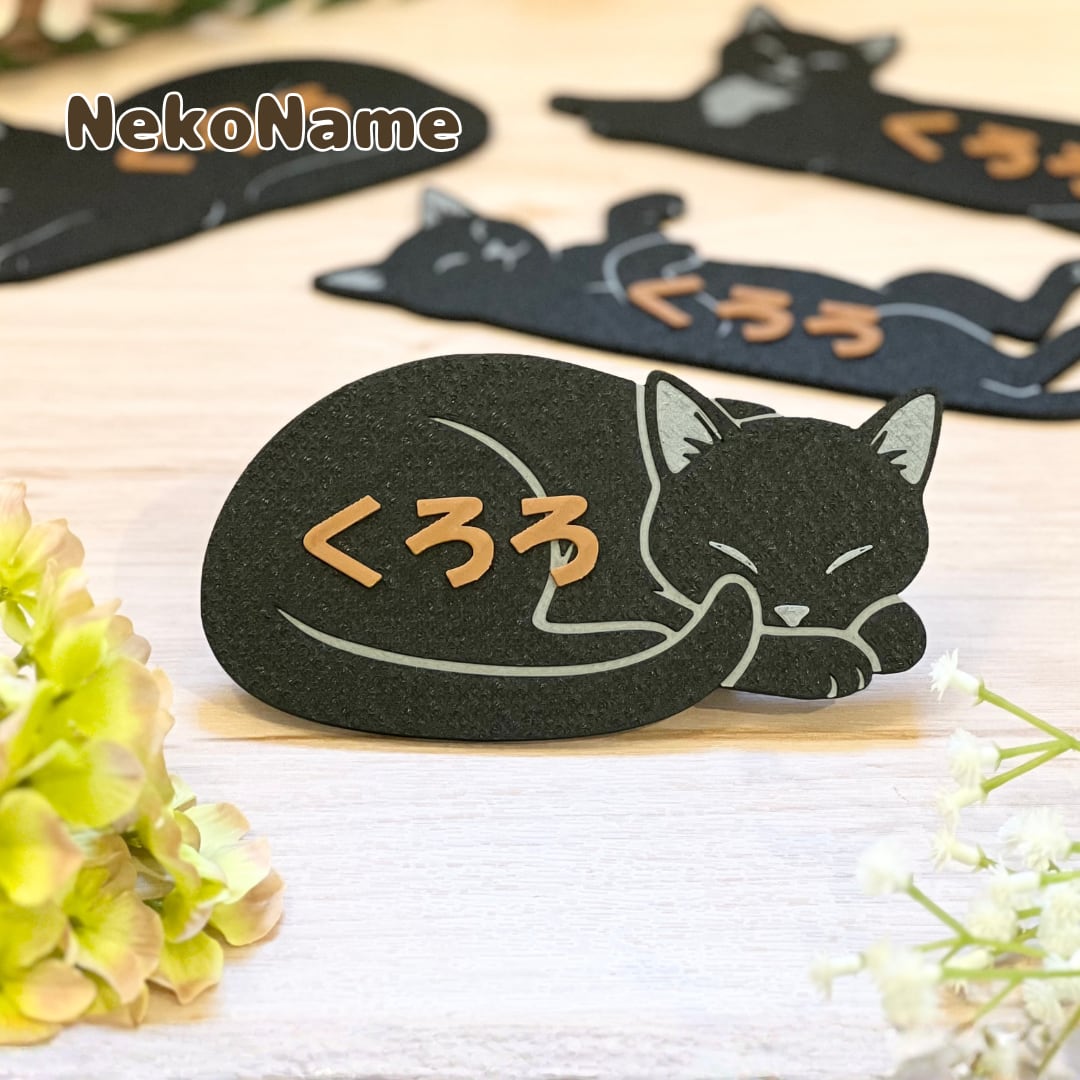 NekoName (黒猫) 名入れできる ”うちの子” ネームプレート 猫の名札