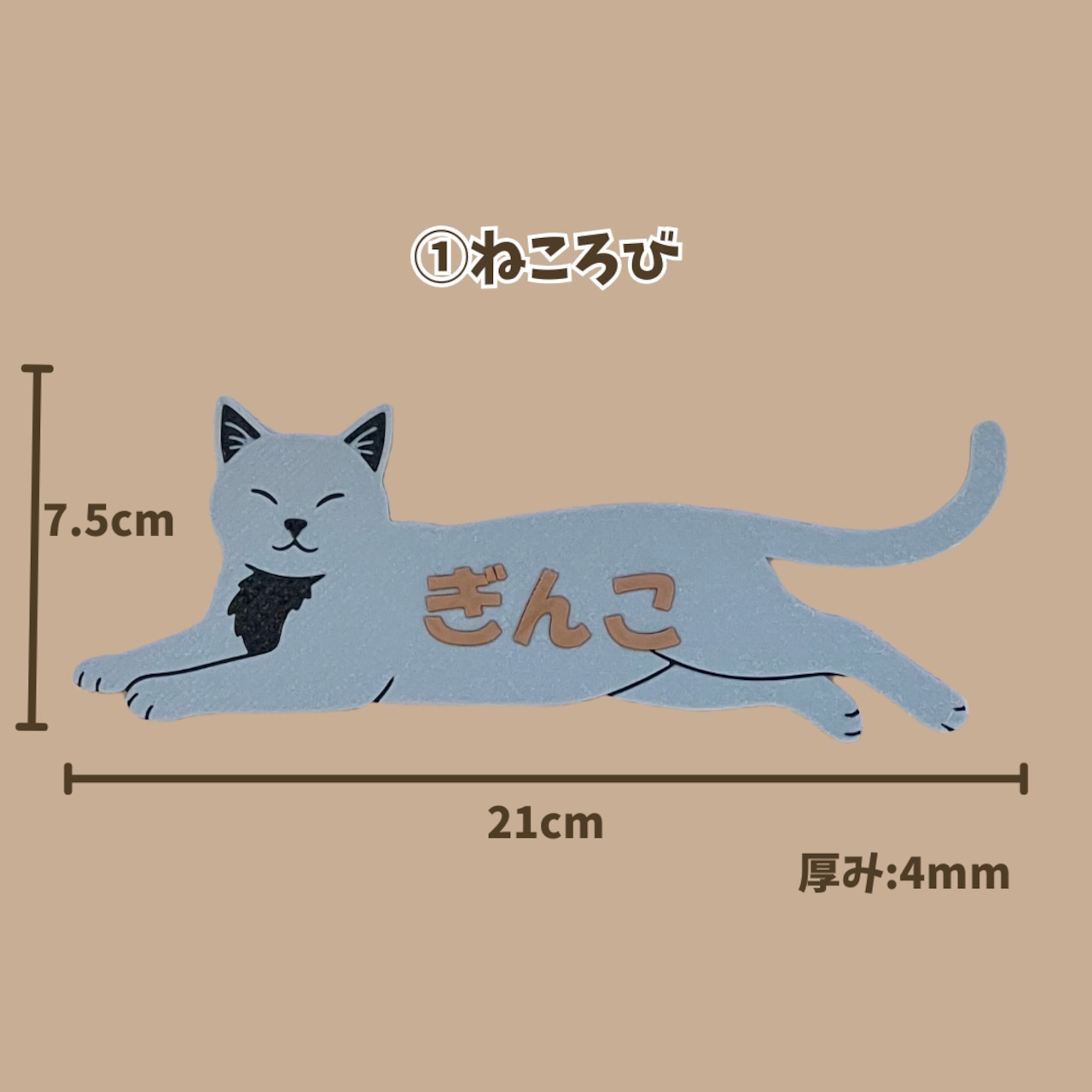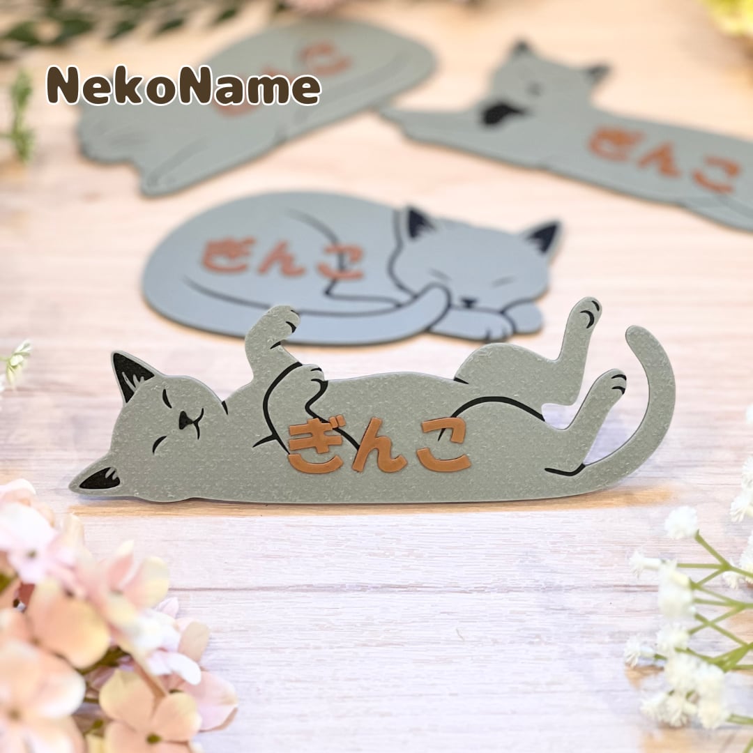NekoName (灰猫) 名入れできる ”うちの子” ネームプレート 猫の名札