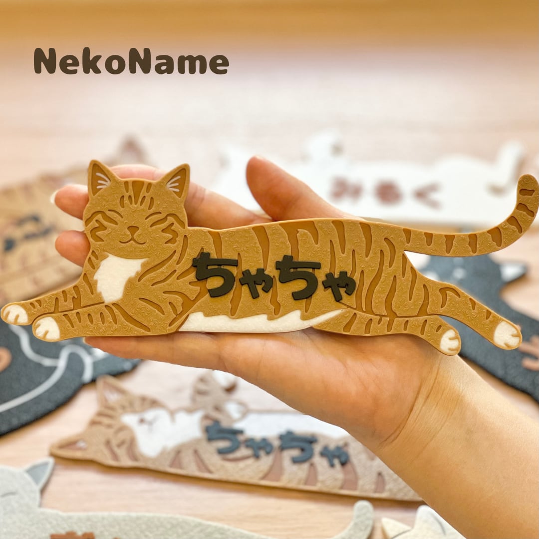 NekoName (茶トラ) 名入れできる ”うちの子” ネームプレート 猫の名札