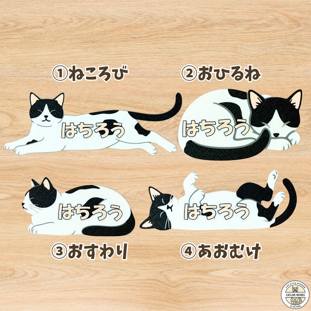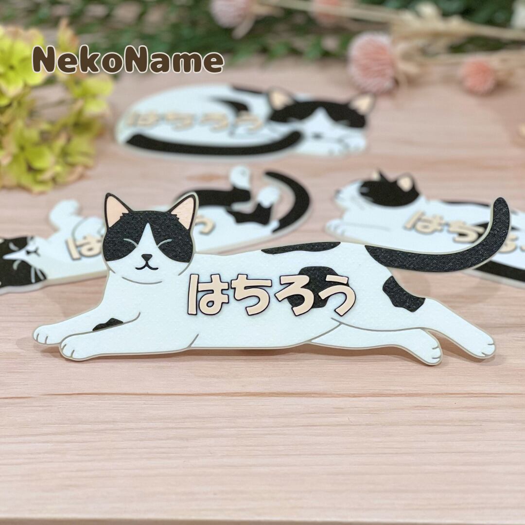 NekoName (ハチワレ2) 名入れできる ”うちの子” ネームプレート 猫の名札